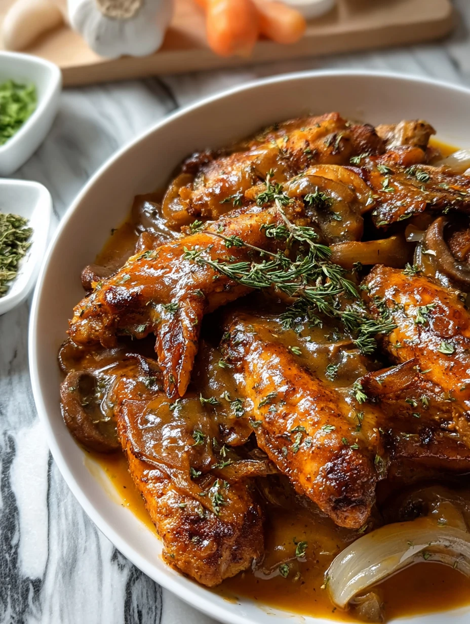 When I want the house to smell like Sunday at grandma’s, I put a pan of smothered turkey wings in the oven. The wings get fall-apart tender, the onions melt into the gravy, and that rich, savory aroma slowly creeps into every room. By the time the pan comes out, everyone’s already standing in the kitchen with a plate.