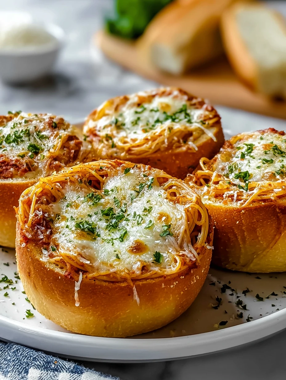 Spaghetti Garlic Bread Bowls work because every bite has contrast. The bread is crisp around the edges but tender inside, the spaghetti is saucy and satisfying, and the melted cheese brings everything together. I also love that the bread bowl soaks up some of the sauce without turning soggy when it is baked just right.