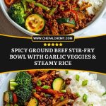 Spicy Ground Beef Stir-Fry Bowl with Garlic Veggies & Steamy Rice