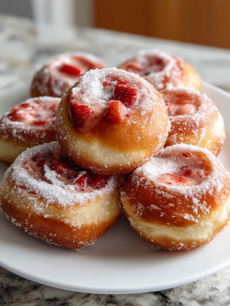 Golden, fluffy, and bursting with fresh strawberry flavor, these Strawberry Donut Rolls are a dream come true for pastry lovers. Imagine biting into a soft, airy donut that’s topped with juicy macerated strawberries and a light dusting of powdered sugar. The balance of sweet and tart, creamy and crisp, makes every bite a moment worth savoring.