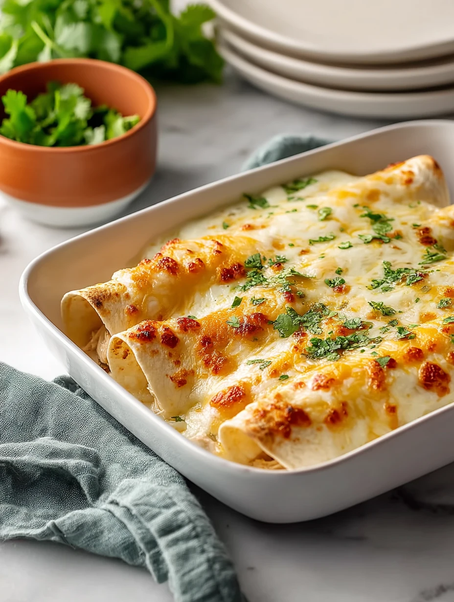 I think these enchiladas are such a hit because they balance richness with ease. The rotisserie chicken brings savory depth right away, and the creamy white enchilada sauce wraps everything in a smooth, comforting layer. Instead of a bold red sauce, this version feels mellow, cheesy, and extra cozy.