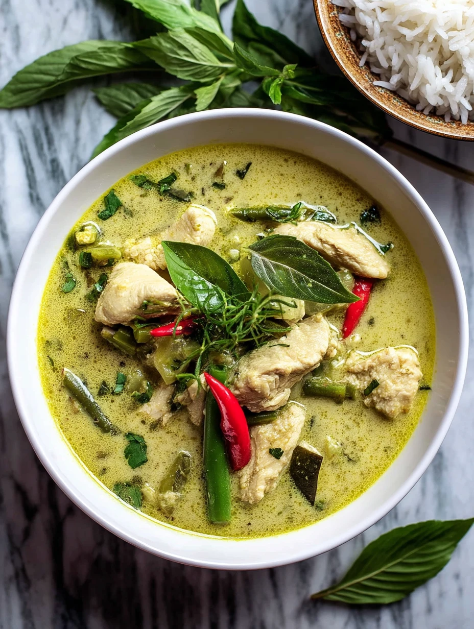Serve your Thai Green Curry with a generous scoop of jasmine rice to catch every drop of the rich sauce. Garnish with more Thai basil or cilantro for freshness and visual appeal. Store leftovers in an airtight container in the refrigerator for up to 3 days. The flavors deepen overnight, making it even more satisfying the next day.
