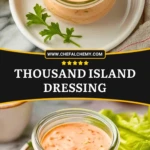 This Thousand Island Dressing is the kind of homemade condiment that instantly makes salads, burgers, wraps, and sandwiches more exciting. It is creamy, tangy, slightly sweet, and full of that classic deli-style flavor people love. I make it with simple pantry staples, and it comes together in minutes, which makes it perfect for quick lunch ideas, easy side dishes, healthy snack boards, and simple homemade sauce recipes. Whether you need an easy dressing for salad night, a flavorful burger spread, or a quick dip for veggies and fries, this easy recipe delivers big flavor with very little effort.