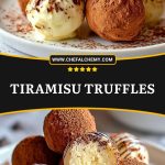 Looking for an easy yet elegant no-bake dessert? These Tiramisu Truffles are rich, creamy, and irresistibly smooth—just like the classic Italian dessert, but in bite-sized form. Made with mascarpone cheese, espresso, crushed ladyfingers, and a dark chocolate shell, these truffles are perfect for a quick dessert idea, an easy recipe for entertaining, or a food gift that stands out. If you need healthy snack inspiration or fancy dessert food ideas without turning on the oven, this one’s for you!