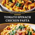 I make this Tomato Spinach Chicken Pasta whenever I want something that feels cozy, colorful, and a little bit special without turning dinner into a long project. The combination of juicy chicken, tender pasta, sweet tomatoes, wilted spinach, and a shower of Parmesan gives me everything I want in one bowl. It is rich enough to satisfy, but still bright and fresh from the tomatoes and greens.