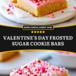 Keywords: Valentines Day dessert, sugar cookie bars, frosted sugar cookie bars, dessert bars, easy dessert recipe, holiday baking, cookie bar recipe