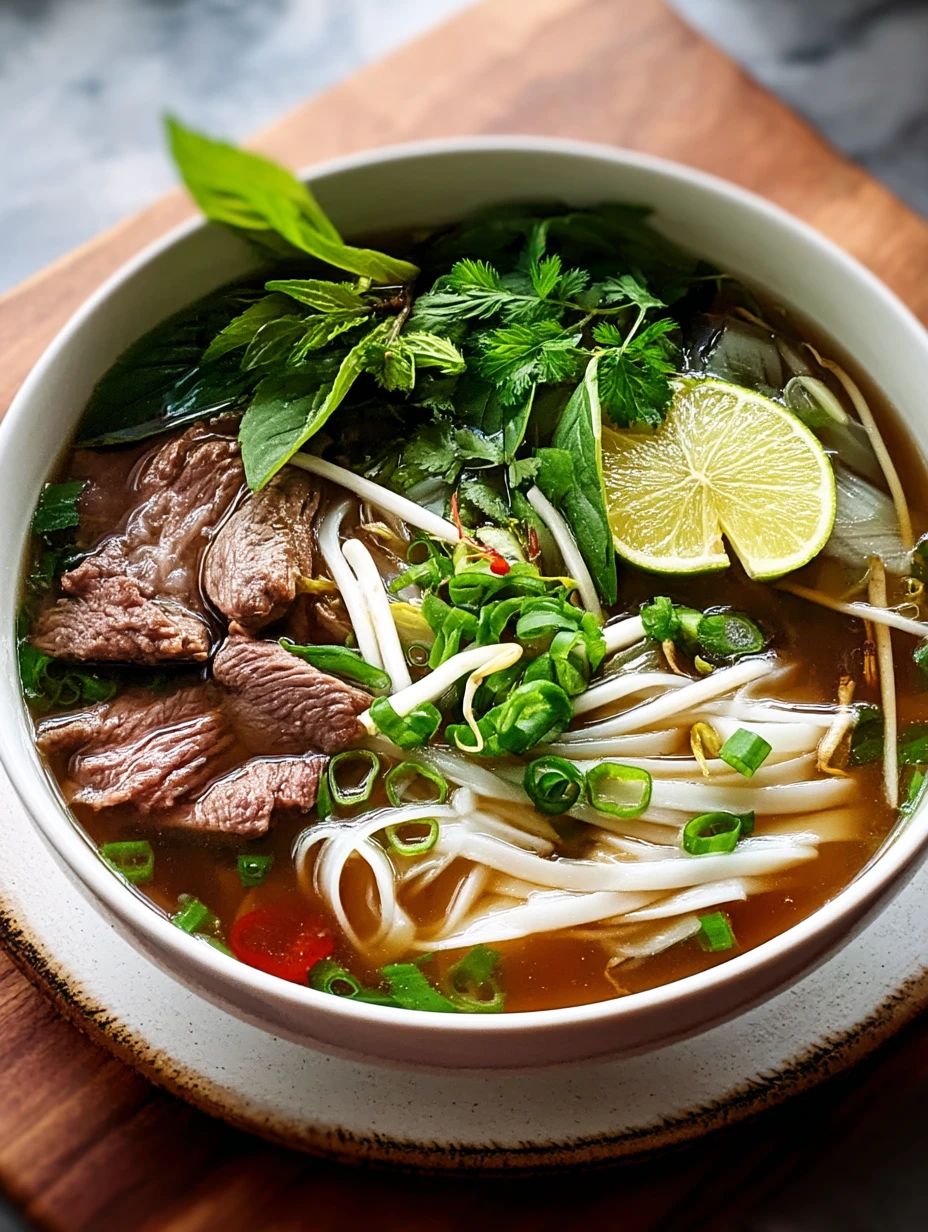 Serve pho immediately while the broth is piping hot to cook the beef slices. Let guests customize their bowls with herbs, sauces, and lime wedges. Leftover broth can be refrigerated up to 4 days or frozen for up to 3 months. Store noodles and toppings separately to prevent sogginess.