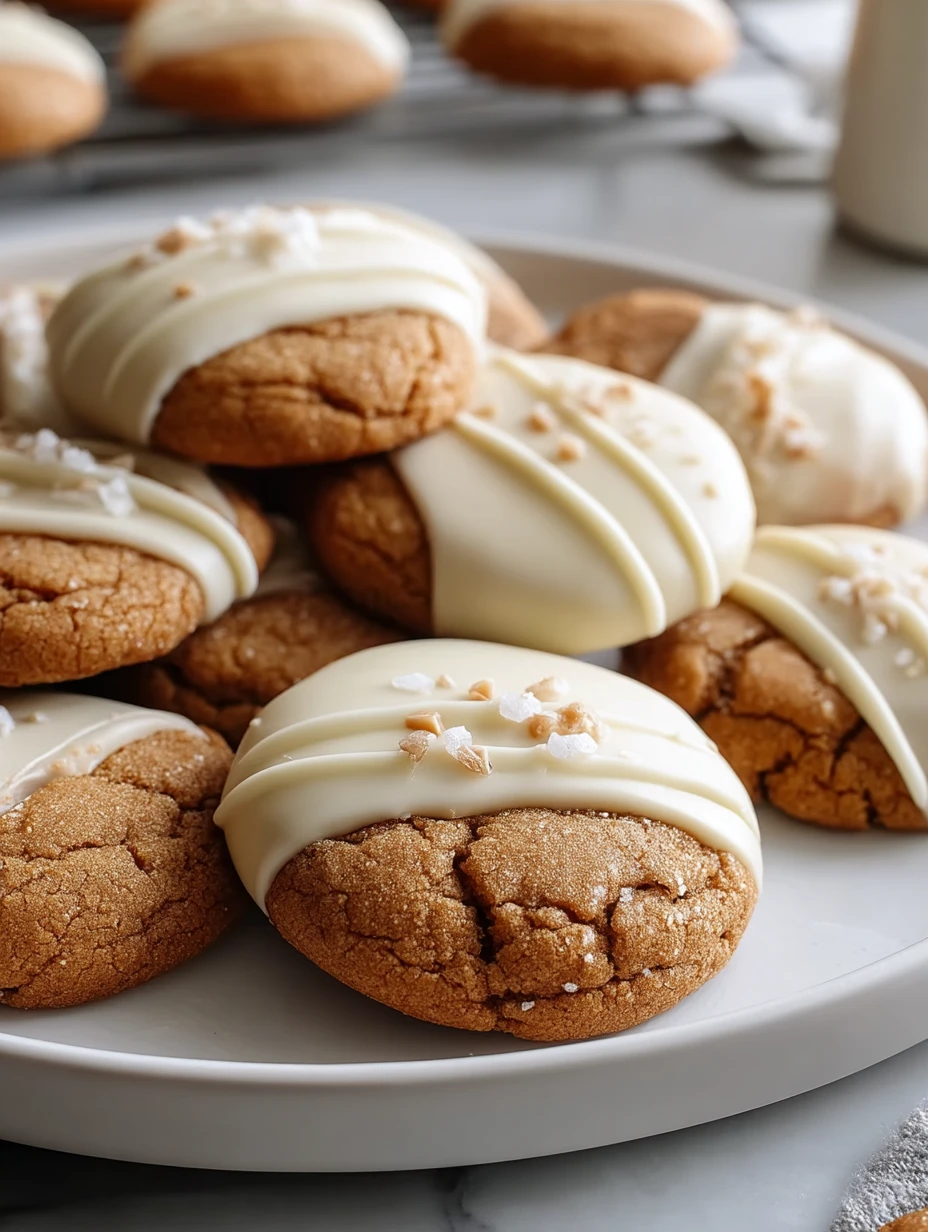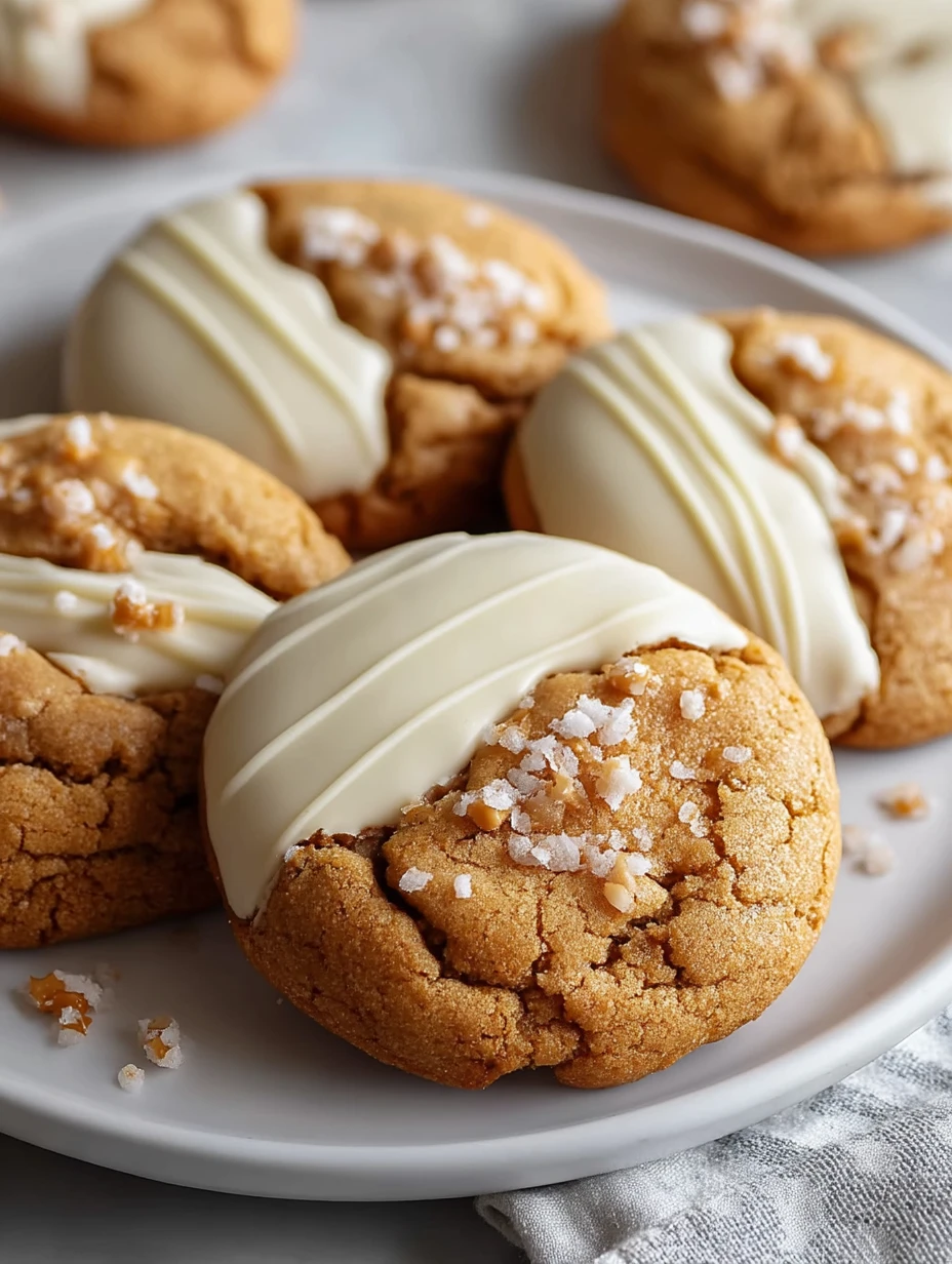 What makes these cookies stand out for me is the contrast. The centers stay tender and chewy, the edges pick up just enough golden color, and the smooth white chocolate coating adds a rich finish that makes them look as good as they taste. A tiny sprinkle of flaky salt on top wakes up the maple flavor beautifully and keeps the sweetness balanced.