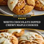 These White Chocolate Dipped Chewy Maple Cookies are the kind of sweet treat that instantly feels cozy, special, and worth baking again. Each cookie is soft in the center, lightly golden at the edges, rich with real maple flavor, and finished with a smooth layer of creamy white chocolate for an easy dessert that looks bakery-style without the fuss. They are perfect for holiday trays, afternoon coffee breaks, easy dessert ideas, homemade cookie gifts, fall baking, winter baking, sweet snack cravings, and simple food ideas when you want an easy recipe that still feels memorable.