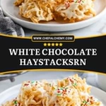 Keywords: white chocolate haystacks, no-bake dessert, holiday treats, Christmas candy, easy dessert, dessert ideas, party food, sweet snack
