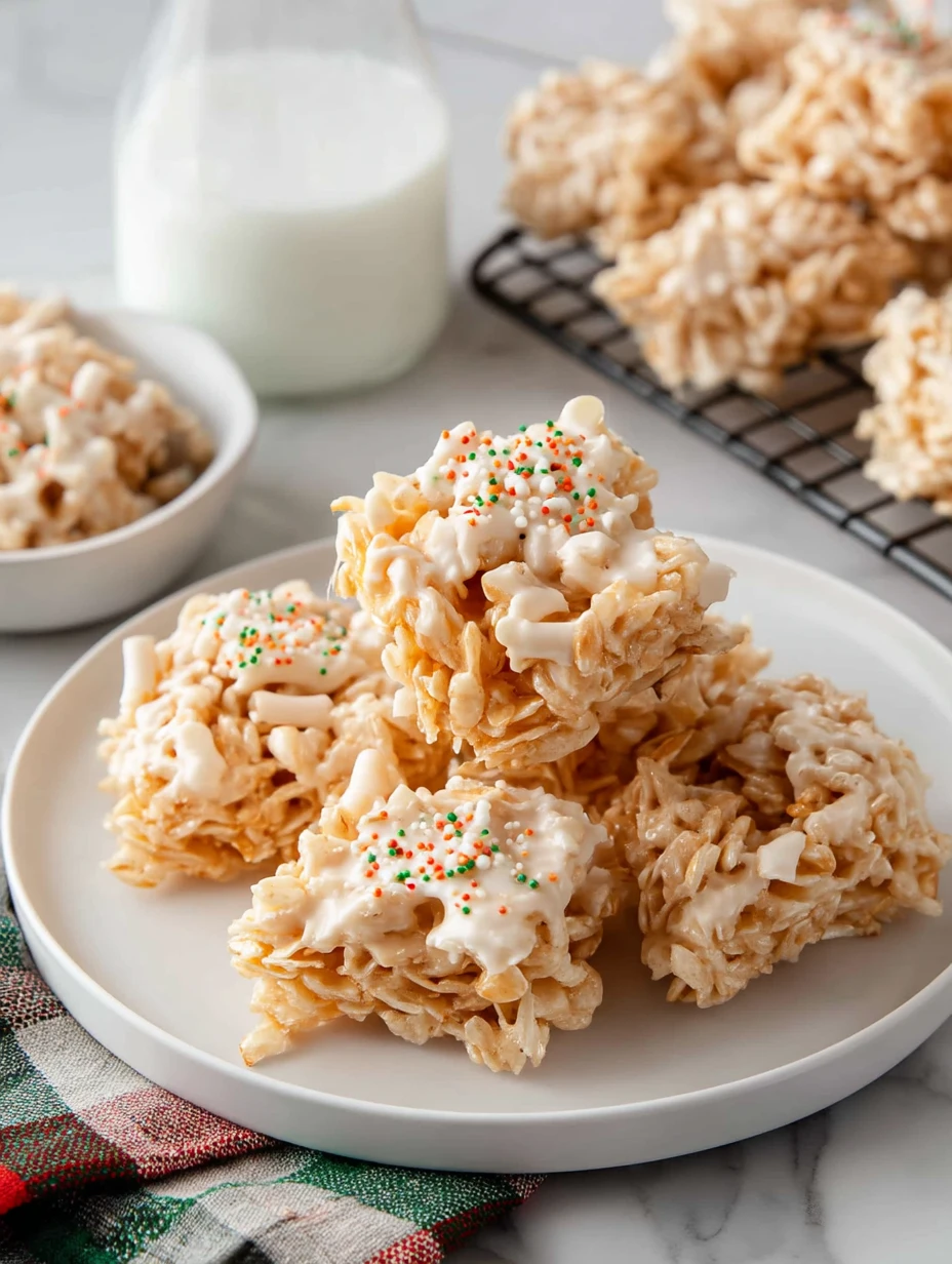 White Chocolate Haystacks are one of those nostalgic little treats I come back to every holiday season because they deliver so much charm with almost no effort. I love the way the creamy white chocolate wraps around the crunchy chow mein noodles and roasted peanuts, creating sweet-and-salty clusters that look festive the second I add a shower of red, green, and white sprinkles.